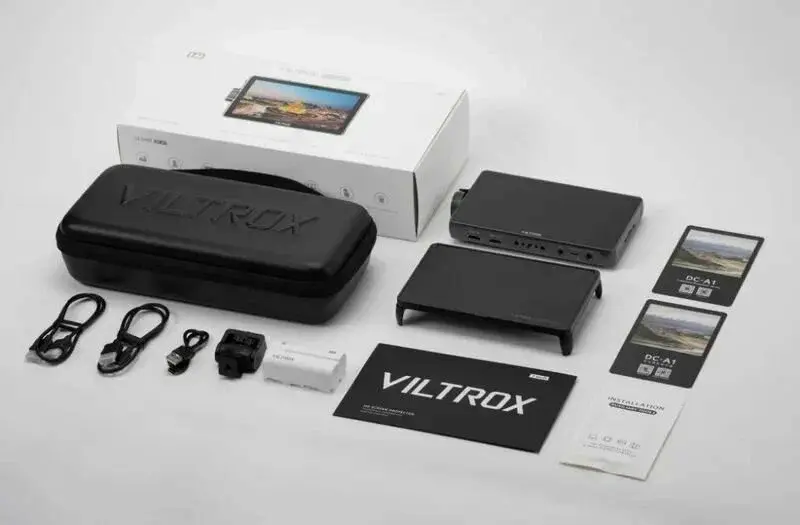 Накамерный монитор 7\" VILTROX DC-A1 2800 Nit HDMI вход/выход тач скрин Характеристики экрана монитора VILTROX DC-A1 Размер экрана: 7\" с функцией Touch Screen Разрешение экрана: FullHD 1920x1080 пикселей, плотность пикселей 316 ppi Соотношение сторон: 16:9 Яркость: 2800 нит - комфортная работа даже в яркий солнечный день Контраст: 1000:1 Углы обзора: 178гр Основные возможности монитора VILTROX DC-A1: Поддержка Touch меню Цветовое пространство Rec. 709 3D LUTs (загрузка через SDCard)Гистограмма Пикинг фокус с выбором цвета и уровня Зебра (1%~100%)Режим анаморфота (1.25x, 1.33x, 1.5x, 2.0x mag)Переворот картинки по горизонтали и вертикали Заморозка картинки Различные маркеры экрана с выбором цвета Выбор цветовой температуры Зумирование (100%~300%)HDMI вход/выход с поддержкой сигнал 4К/60Выход для наушников Питание: аккумулятор типа Sony NP-F (аккумулятор NP-F550 с зарядкой от USB-C входит в комплект)Внешнее питание 12-18В (блок питания приобретается отдельно), USB-C 9В/3А вход для внешнего питания Вес 400г Комплект поставки монитора VILTROX DC-A1: Съёмный полноразмерный солнцезащитный козырёк Защитная плёнка на экран Аккумулятор типа NP-F550 (около 2 часов работы) крепление на башмак камеры Кабель HDMI, Mini HDMI Ключ Кабель USB-C Прочный чехол