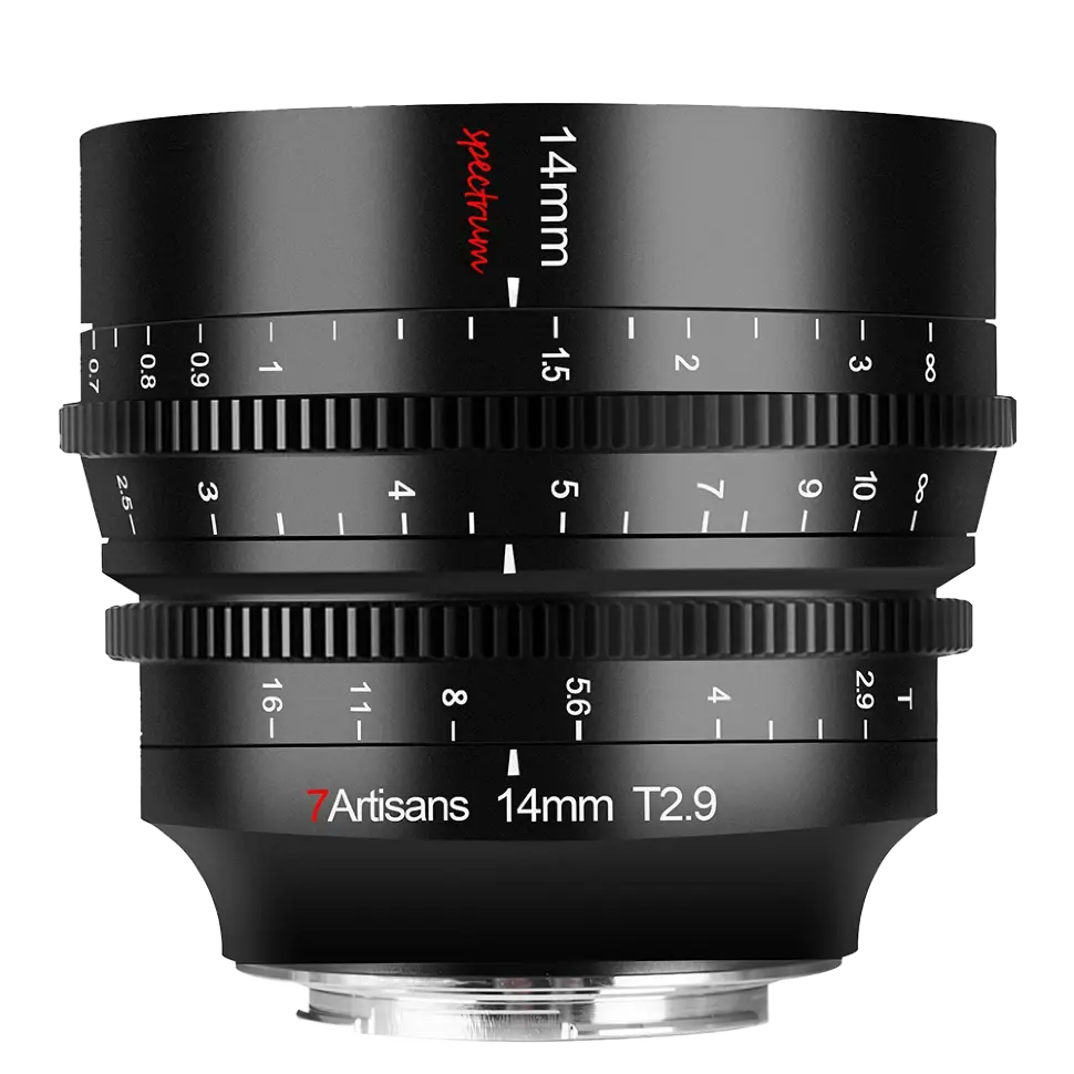 Новая модель Spectrum 14mm T2.9 разработанная по современным стандартам для Fullframe камеры. Объектив любого из фокусных расстояний имеет одинаковый дизайн зубчатых колец, благодаря чему вы сможете смело менять объективы на камере, не перенастраивая положение follow focus